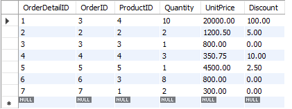 orderdetails Table: