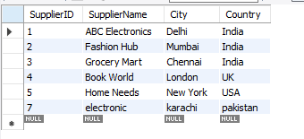 ● WHERE SupplierID NOT IN (SELECT SupplierID FROM Products)